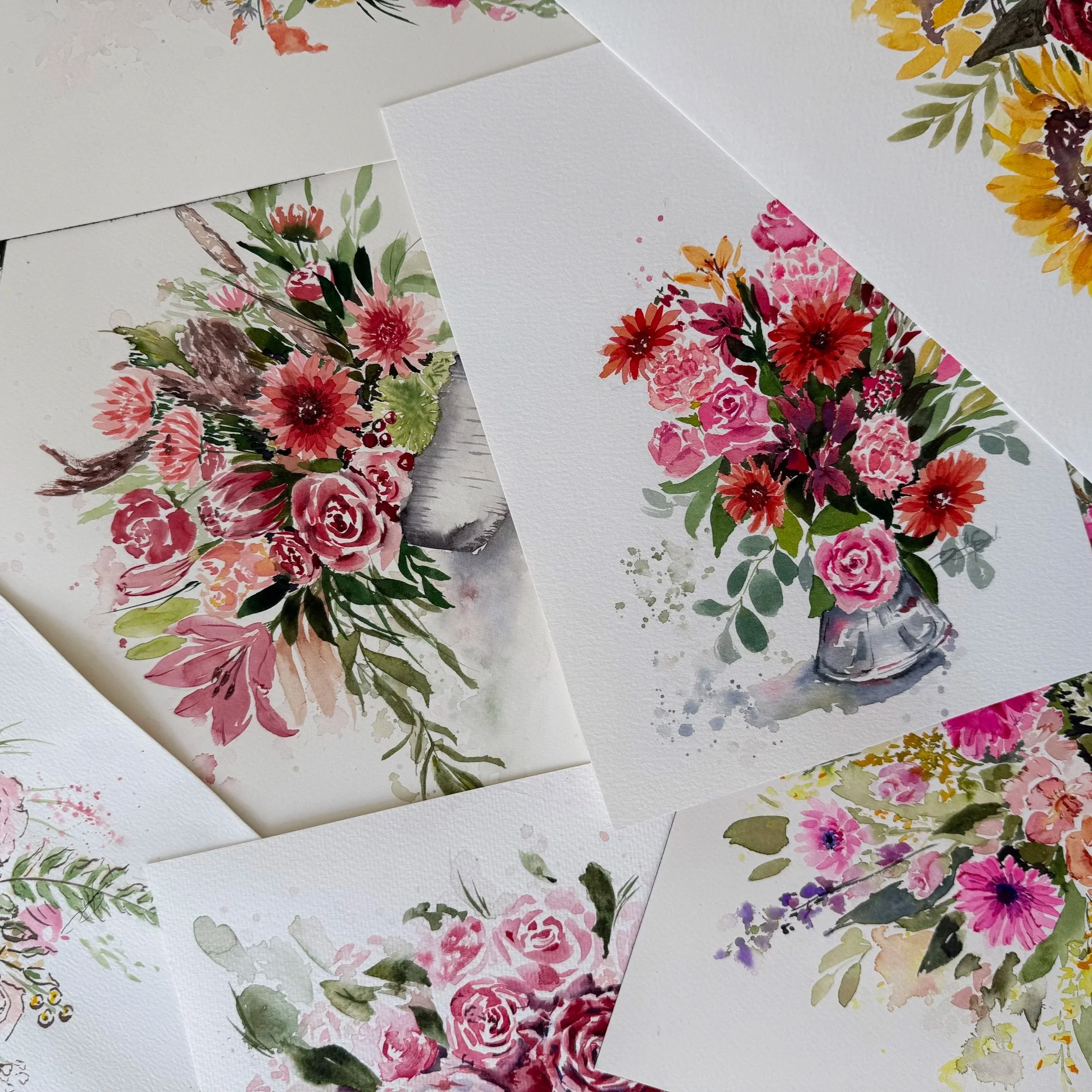 Dive into the Artist's Portfolio, a gallery of original watercolor paintings ready to be your next masterpiece. Each piece here is a potential project for our watercolor session, offering you a choice of subject and style to recreate. FLORALS FALL WINTER